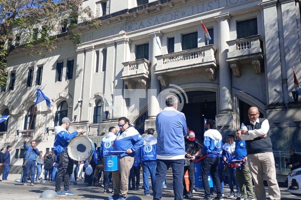 Trabajadores Judiciales realizan una protesta frente a los Tribunales santafesinos en el marco de un nuevo reclamo por la ocupación de las vacantes disponibles en el sistema judicial.