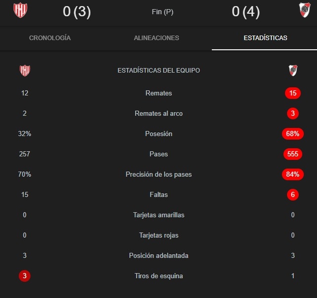 Aún así, Unión supo inquietar. Generó 12 remates (2 al arco) contra 15 (3 al arco) de River y tuvo más córners (3 contra 1). Además, con 15 faltas, mostró un despliegue defensivo que sostuvo la paridad hasta el final.