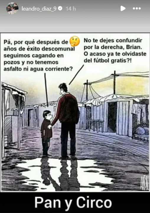 El delantero de Atlético Tucumán, Leandro Díaz, aprovechó la visibilidad de su cuenta de Instagram y público una historia, en la que dejó clara su postura política.