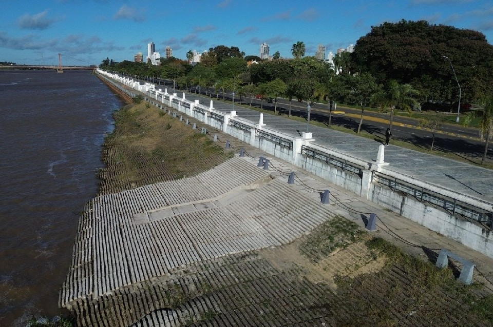 Entre las iniciativas en marcha, se destaca la consolidación del sector del talud del Dique 2 del Puerto, afectado por erosiones debido al caudal del desagüe pluvial de calle La Rioja. El objetivo es estabilizar la estructura mediante recintos con bolsas de geotextil, rellenos bajo agua, protección con bloques de hormigón adheridos a geotextil y cubierta vegetal con geomanta.