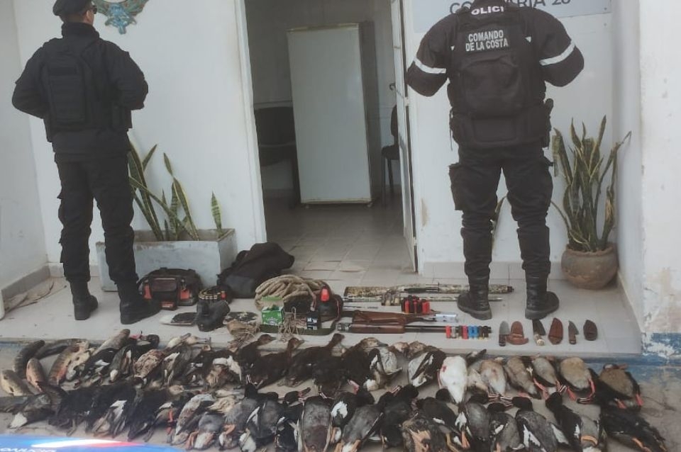 Personal del Comando Radioeléctrico de la Costa detuvo a seis hombres por infracción a la Ley Nacional Nº 22.421 de Conservación de la Fauna Silvestre y por Tenencia indebida de arma de uso civil.