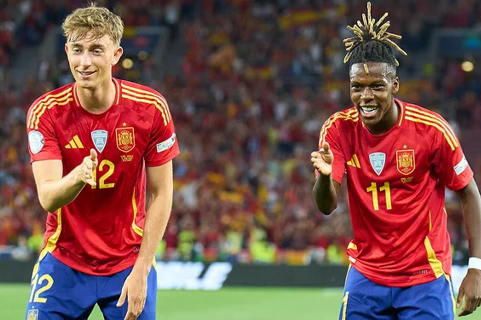 España: Unai Simón; Marc Cucurella, Dean Huijsen, Robin Le Normand, Pedro Porro; Pedri, Martín Zubimendi, Mikel Merino; Nico Williams, Mikel Oyarzabal y Lamine Yamal.