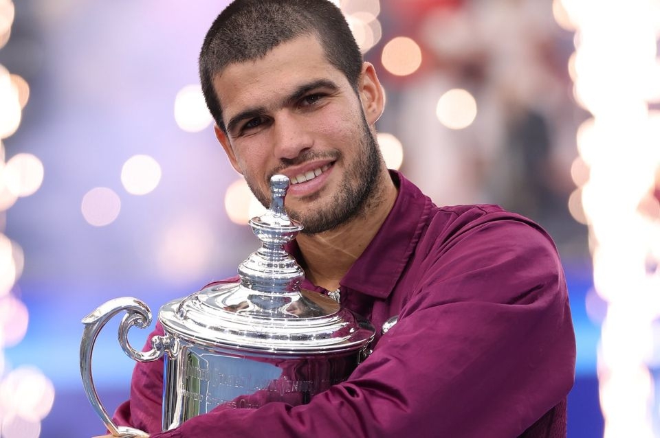 En su camino hacia la final del Grand Slam estadounidense, Alcaraz llegó habiendo ganado todos los sets que disputó. Fue en la definición ante Jannik Sinner (2°) donde recién cedió su primera manga en el campeonato. Al italiano vencería por 6-2, 3-6, 6-1 y 6-4, en dos horas y 42 minutos de juego.