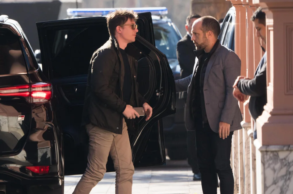 Acto seguido, el vocero presidencial fue el segundo en incorporarse al intercambio, seguido por Bullrich, quien llegó minutos antes de las 9.30. Poco después desfiló por el salón de los Bustos, Santiago Caputo.