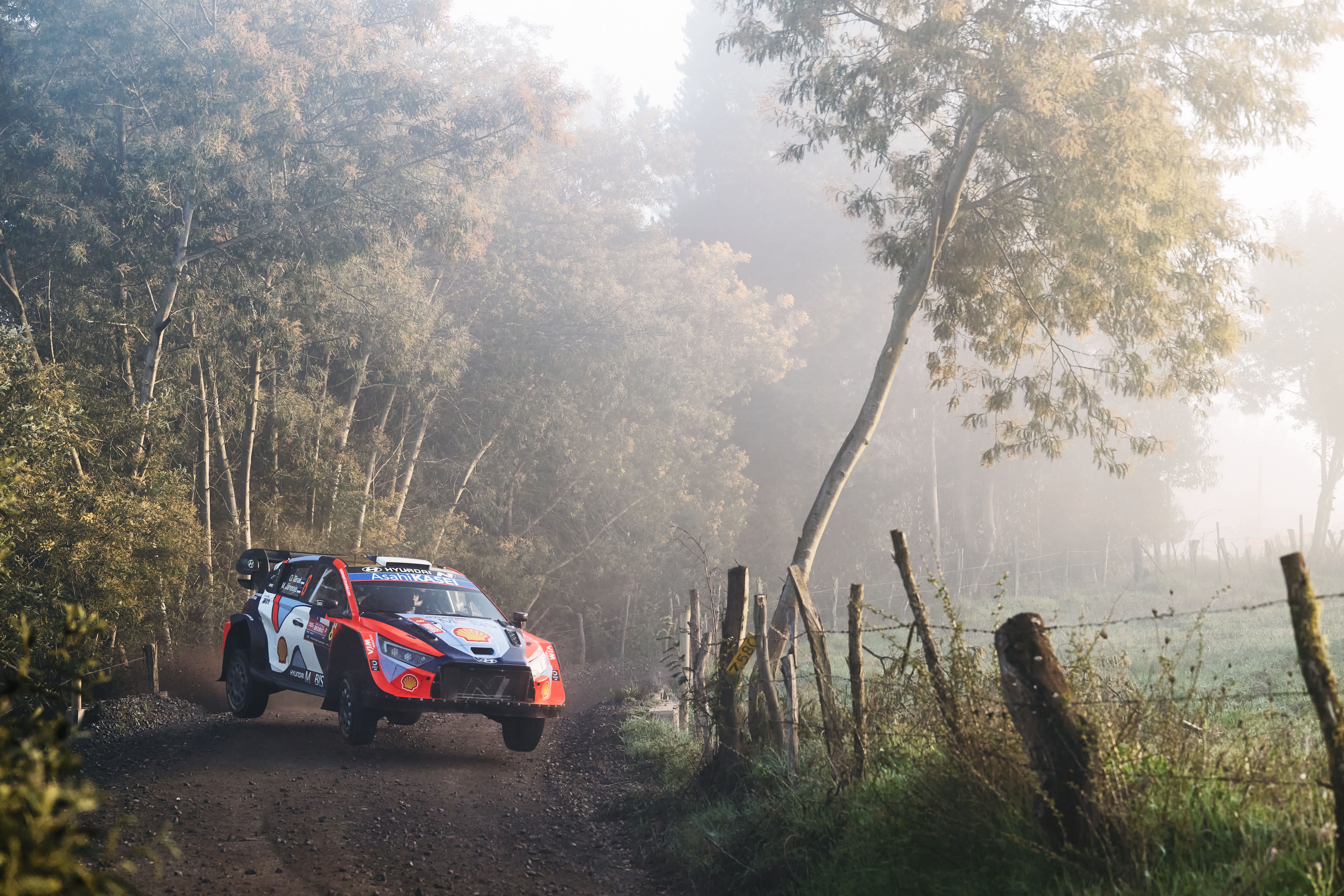 Adrien Fourmaux ocupó la tercera posición en otro Hyundai, 9,6 segundos por detrás de Evans. El francés se recuperó de un contacto temprano con un banco para superar a su compatriota Sébastien Ogier por 4,3 segundos, con el ocho veces campeón del mundo luchando por encontrar el punto óptimo con el equilibrio de su Toyota y los ajustes de configuración de planificación en el servicio.