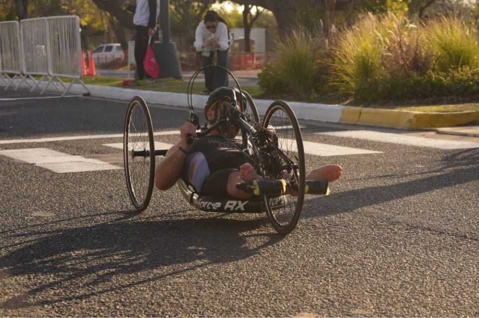 Cerca de las 8, cuatro deportistas se lanzaron a la Laguna Setúbal para iniciar el circuito de paratriatlón: Facundo Palacios, Facundo Vera, Alberto Yapur, todos de la provincia de Tucumán; y Leonel Sappag Bottari de Mendoza. Vera y Yapur realizaron el circuito acompañados por sus guías, debido a que sufren disminución visual producto del albinismo y ceguera, respectivamente. Por otro lado, Palacios es usuario de silla de ruedas y Sappag Bottari usa una protesis, ya que tiene una pierna amputada.