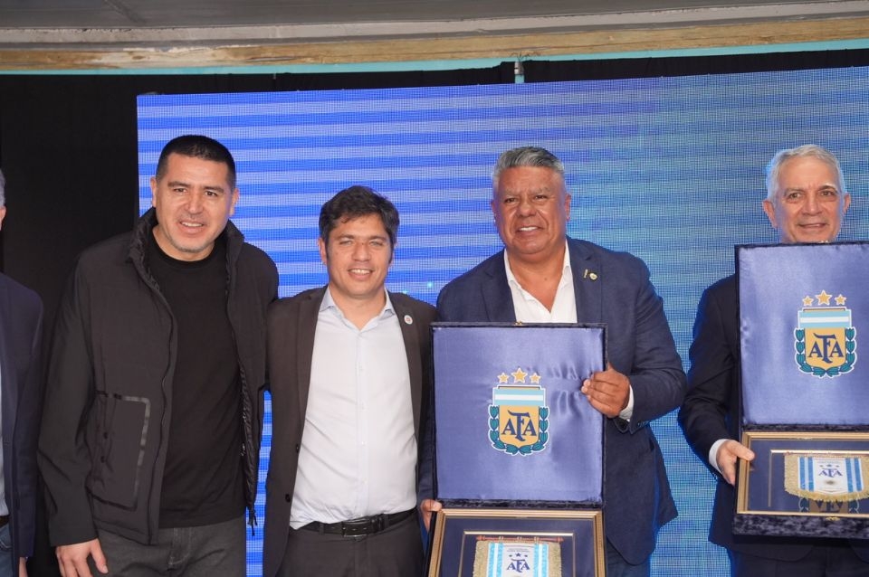 La segunda foto reveló el momento cuando Tapia posó junto al Gobernador de la Provincia de Buenos Aires, con una placa de la AFA. En el lado izquierdo de la postal, estuvo el presidente de Boca Juniors, Juan Román Riquelme, quien se mostró con una extraña sonrisa de oreja a oreja.