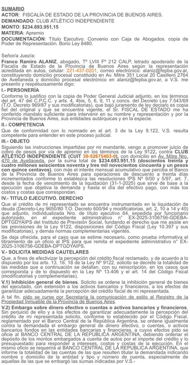 La inhibición, que no impide la firma de contrato, se debe a que la institución no abonó los aportes al cuerpo docente del centro educativo del club. El monto por pagar es de alrededor de 235 millones de pesos, y la dirigencia del "Rojo" no da señales de saldar dicha deuda.