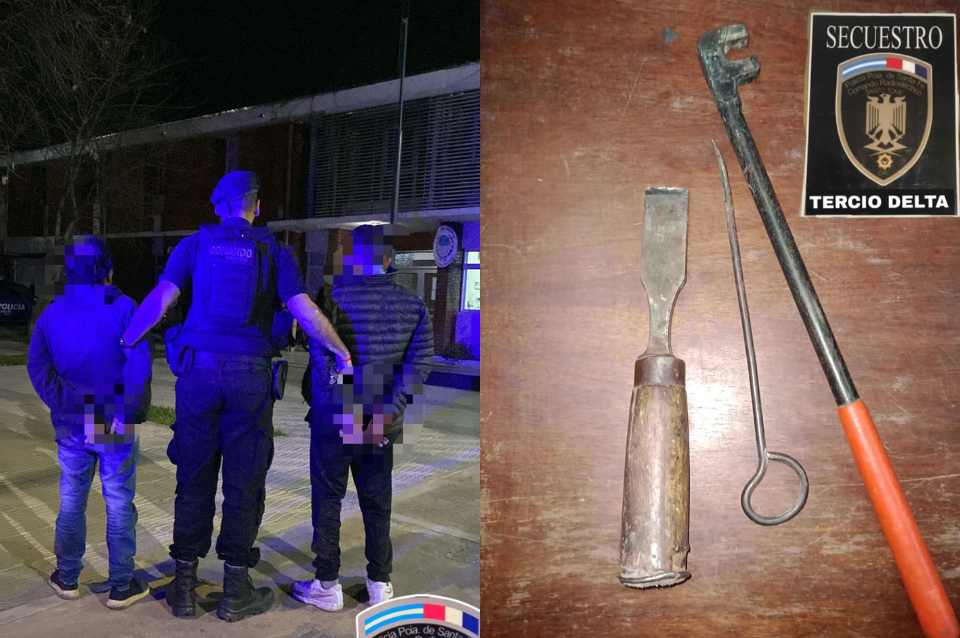 El hecho ocurrió en una vivienda deshabitada de calle Almirante Brown. Los detenidos, de 30 y 44 años, fueron sorprendidos en el interior con herramientas y objetos listos para sustraer.