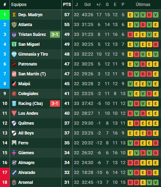 En cuanto a la tabla, el Sabalero continúa en el puesto 16 con 29 puntos, en una campaña que tuvo más aroma a descenso que a otra cosa. Su permanencia en la categoría se explica únicamente por los flojísimos desempeños de Talleres de Remedios de Escalada y Defensores Unidos, que terminaron todavía más abajo.