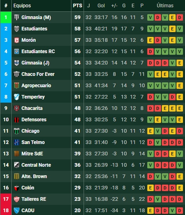 En la otra cara de la moneda, Gimnasia de Mendoza manda con 59 puntos, mientras que Estudiantes (BA) lo sigue de cerca con 58, marcando una diferencia abismal respecto al club santafesino. El contraste es elocuente: Colón se preparó para ser protagonista y terminó penando en el fondo, con números que reflejan una de las campañas más pobres de su historia reciente.
