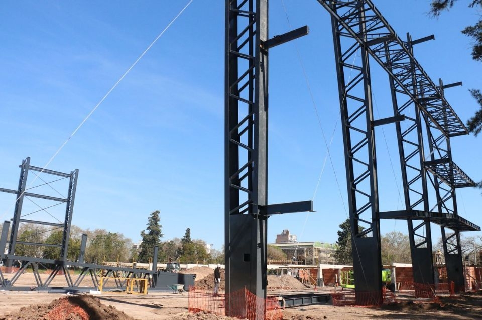 Sobre estos avances, el subsecretario de Arquitectura y Obras Públicas, Lucas Condal, señaló que “también avanzamos en la ejecución de columnas, vigas de hormigón y conductos pluviales principales en el bloque de servicios, donde estarán los vestuarios y baños”.