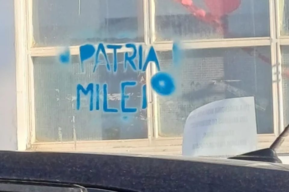 Por otra parte, las pintadas también hicieron referencia a las supuestas coimas que habría recibido la secretaria de Presidencia y hermana del presidente, Karina Milei, desde la Agencia Nacional de Discapacidad (ANDIS): “Alta coimera - 3%”, se lee en las paredes.