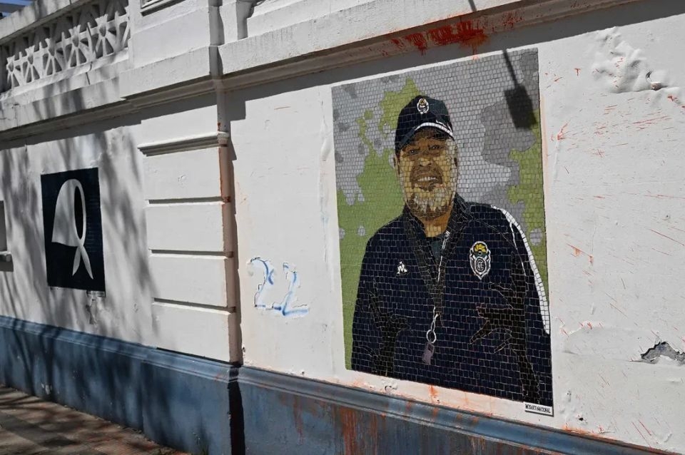 El mosaico amaneció este martes con manchas de pintura roja, lo que supuso un ataque por parte de hinchas del clásico rival Estudiantes. No solo el mural de Maradona apareció vandalizado sino, también, símbolos populares e ídolos del club que estaban pintados en los alrededores de estadio.