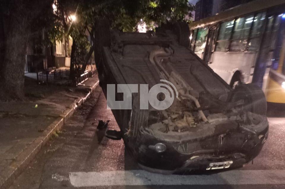 Un conductor volcó su vehículo en la esquina de Obispo Gelabert y San Jerónimo, en pleno macrocentro santafesino.  Se trata de un joven de 27 años que venía al mando de un 208 se habría descompensado, perdió el control y terminó volcando.