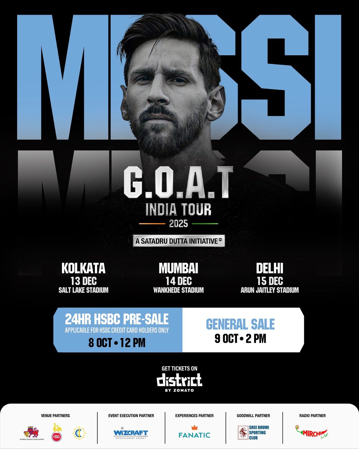 El denominado Messi G.O.A.T India Tour 2025 pondrá en venta los tickets la semana próxima, pero en su sitio web indicó: "La espera termina después de 14 años. El G.O.A.T. llega a nuestro territorio y esta gira está diseñada para celebrar cada faceta de él".