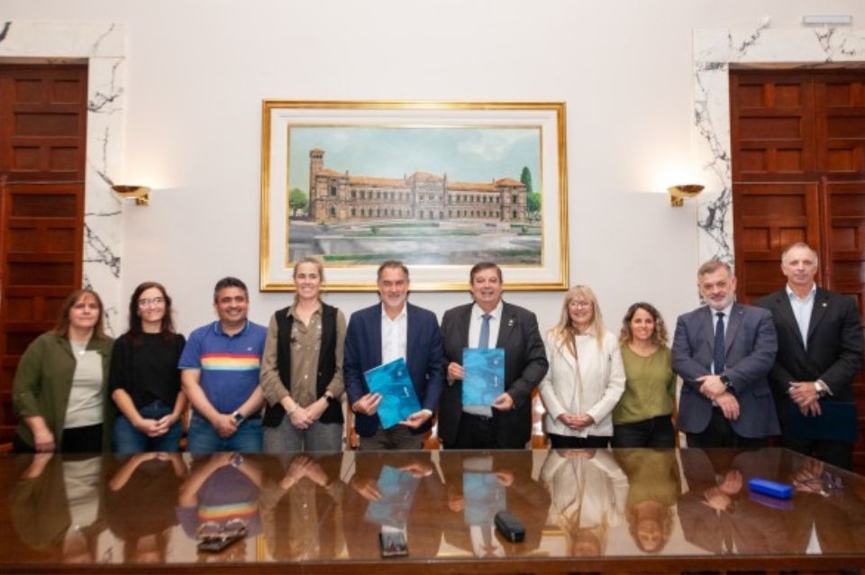 La firma del acuerdo se realizó este miércoles en rectorado y estuvo en manos del rector de la UNL Enrique Mammarella y de Javier Dellamónica, presidente de Safetur, quienes estuvieron acompañados por el decano de la Facultad de Arquitectura, Diseño y Urbanismo, Sergio Cosentino, autoridades de la facultad y del ente de turismo.