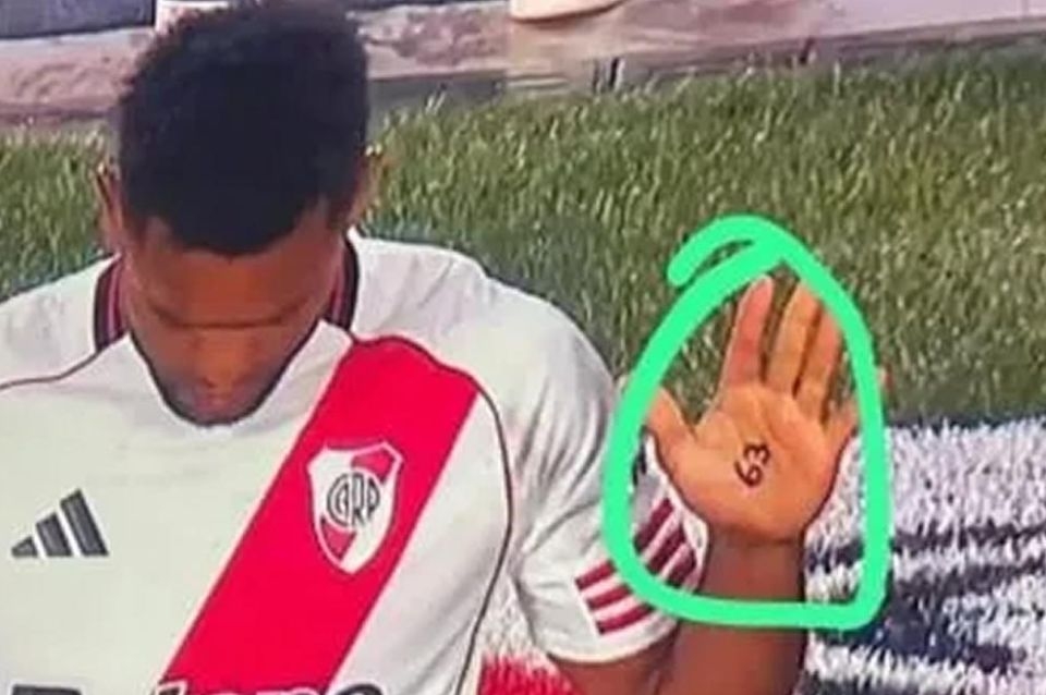 Cuando el Colibrí ingresó en el segundo tiempo, con el marcador 1-0 abajo, antes de poner un pie en el campo de juego, se puso a rezar con las manos hacia arriba, como suele hacer todos los partidos. En ese momento, se vio en la transmisión y llamó la atención que en su palma izquierda tenía escrito el número "63".