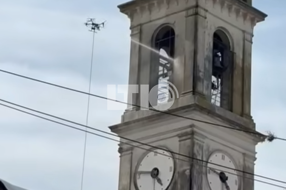 El intendente Juan José Placenzotti explicó a LT10: “Hace algunos días comenzamos con los trabajos de limpieza y puesta en valor de la torre del templo San Carlos Borromeo, utilizando un método innovador y revolucionario que consiste en la limpieza con drones industriales de origen estadounidense, que son únicos en el país y que pocas veces fueron utilizados aquí en la provincia de Santa Fe”.