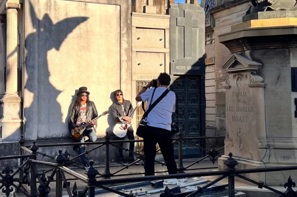 Las imágenes muestran a Slash, con su icónico sombrero y su guitarra Gibson Les Paul, y a Richard Fortus posando junto a él entre los ángeles de mármol del cementerio. El material fue compartido en redes sociales por el empresario Jorge “Corcho” Rodríguez, quien coordinó la producción junto a funcionarios de la Subsecretaría de Gestión Comunal de la Ciudad de Buenos Aires.