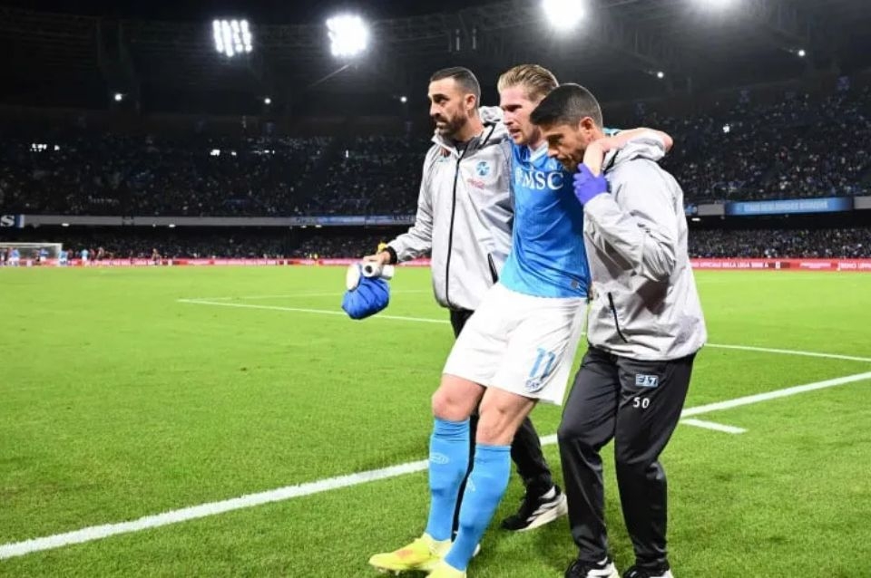 El belga Kevin De Bruyne, mediocampista del Nápoli, no volverá a jugar hasta inicios de 2026 debido a la lesión en el bíceps femoral derecho que sufrió ante el Inter, después convertir desde los doce pasos el primer gol del duelo, que terminó en triunfo por 3-1.