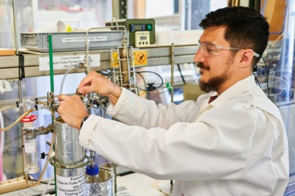 El grupo de trabajo empleó pirólisis —degradación térmica sin oxígeno— para procesar la biomasa. El método genera biochar, gases y un bioaceite sobre el que se concentró el estudio, por su interés estratégico como fuente renovable de compuestos aromáticos que pueden complementar o sustituir derivados fósiles.