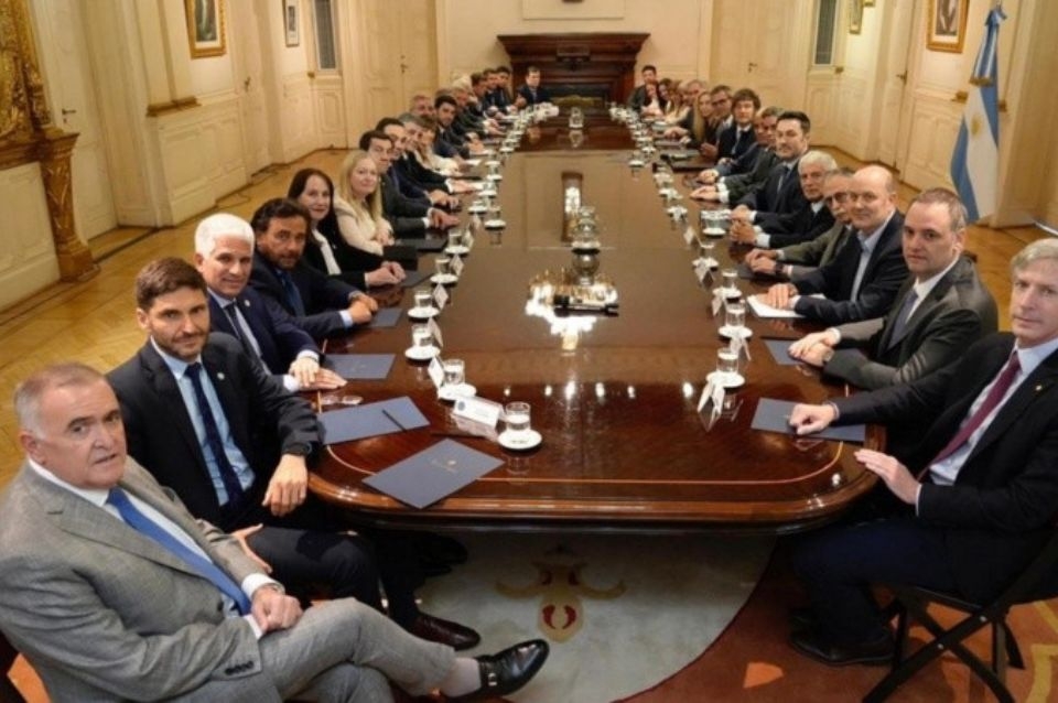 Luego de la reunión, la Casa Rosada busca una foto en donde solo quedarán afuera Axel Kicillof (Buenos Aires), Gildo Insfrán (Formosa), Ricardo Quintela (La Rioja) y Gustavo Melella (Tierra del Fuego). En el oficialismo no los invitaron porque sostienen que no pueden iniciar el debate y consenso con ellos.