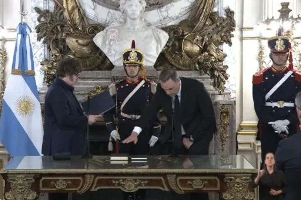 La ceremonia fue breve y se concretó después de la reunión que encabezó Milei junto a más de 100 senadores y diputados electos de La Libertad Avanza y PRO.