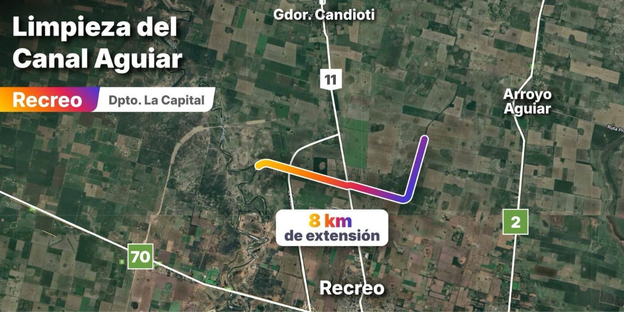 Hasta el momento, se ejecutaron 4 kilómetros de destronque, desbosque, limpieza de fondo, taludes y conformación de banquina, con el objetivo de recuperar la capacidad hidráulica del canal y mejorar el drenaje de más de 12.000 hectáreas rurales y urbanas del norte santafesino, beneficiando a las localidades de Candioti, Laguna Paiva, Arroyo Aguiar, Monte Vera y Recreo.