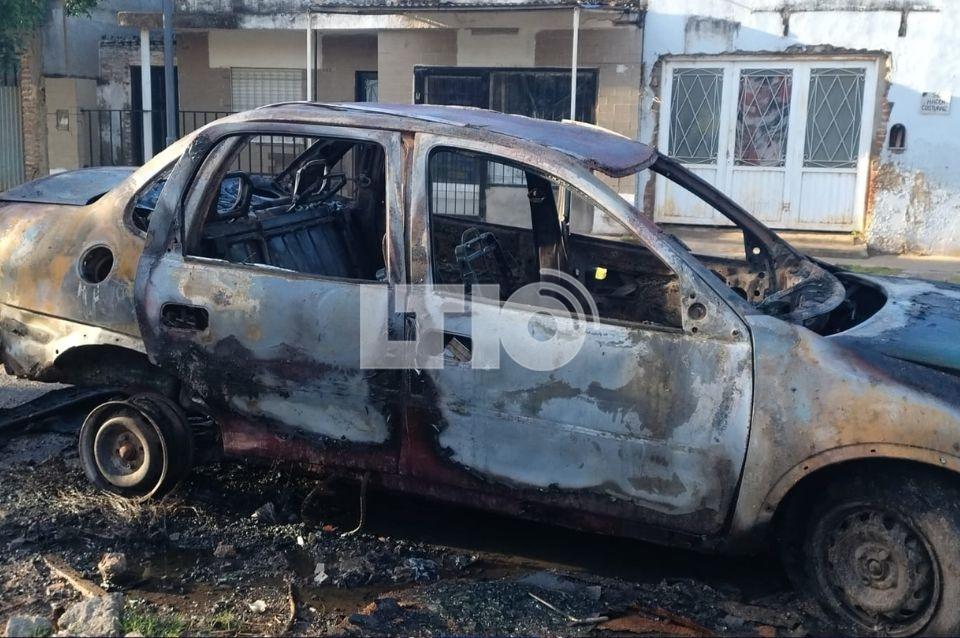 Un vecino fue el que llamó al 911 e informó que vio a dos personas pasar a bordo de una moto, rociar el auto con combustible y prenderle fuego.