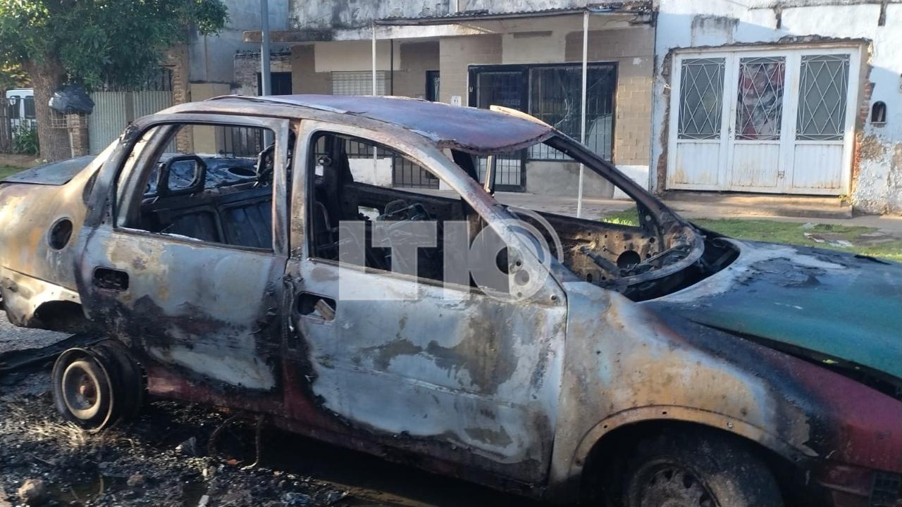 Dos personas a bordo de una moto pasaron por la calle e incendiaron un vehículo que estaba estacionado en Alberti al 4200.