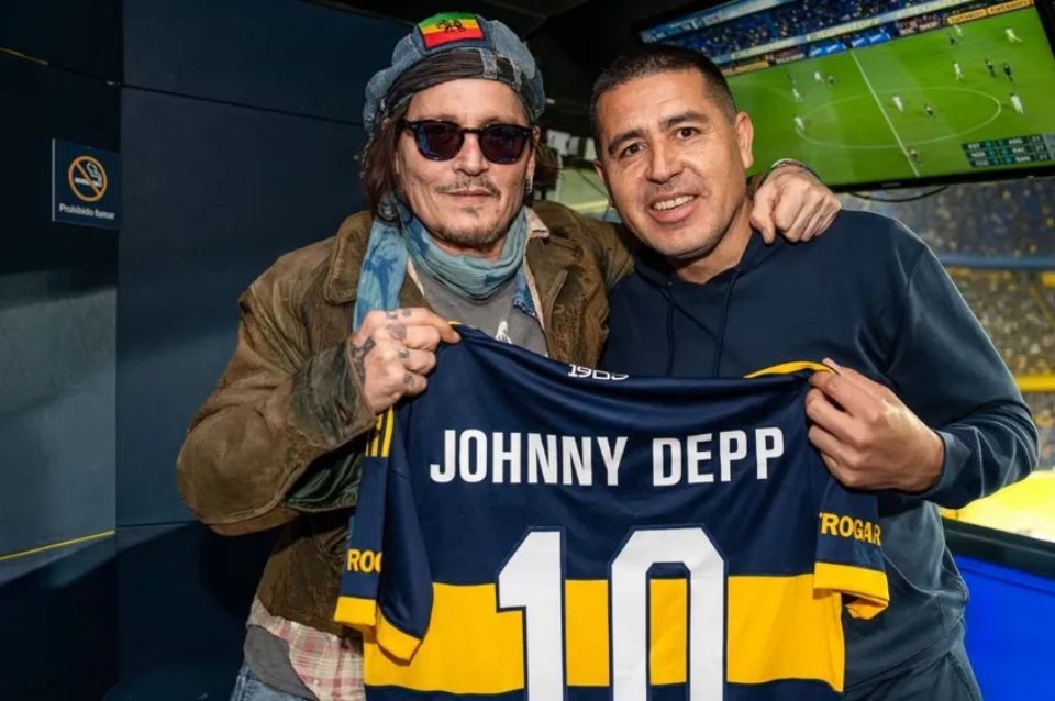 En la imagen, Riquelme aparece obsequiándole una camiseta del equipo al actor. El club acompañó la publicación con un mensaje contundente: “Johnny Depp junto a Juan Román Riquelme viendo al puntero del campeonato”.