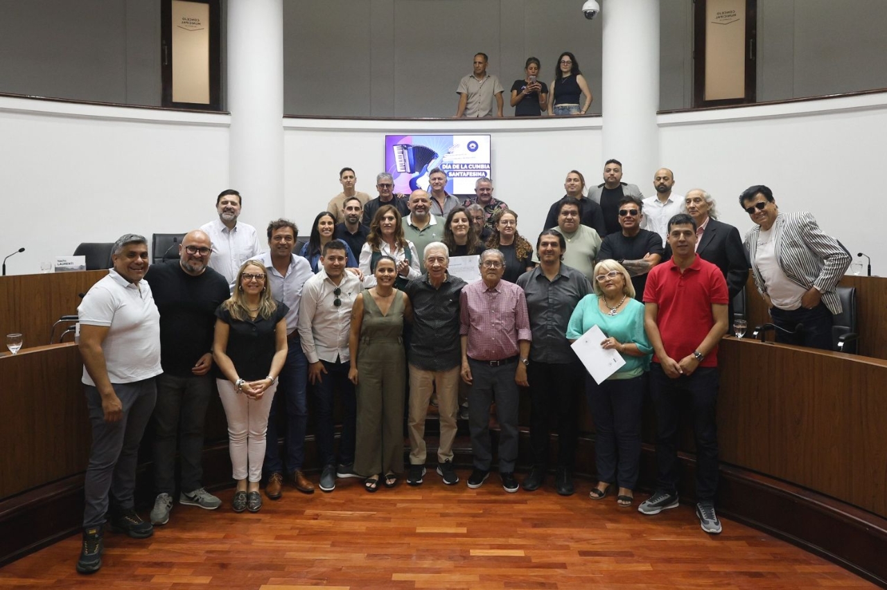 En el recinto de sesiones del Concejo Municipal, se realizó la entrega del reconocimiento a personas y agrupaciones por su destacada participación en el ámbito profesional de la cumbia santafesina. Dicho reconocimiento se enmarca en el decreto Nº 1192, impulsado por la concejala Jorgelina Mudallel y aprobado en octubre de 2025.