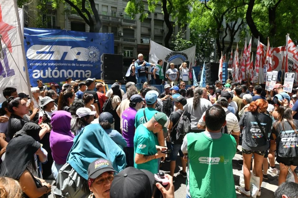 Paralelamente, mientras se desarrollaba la reunión, las dos CTA, junto a organizaciones sociales se movilizaron frente a la Secretaría de Trabajo, comandada por Julio Cordero, “para exigir que el ingreso básico iguale el costo de la Canasta Básica Total”, además de sumar un bono de fin de año, actualizar los programas sociales y reconocer del trabajo sociocomunitario, entre otros reclamos.