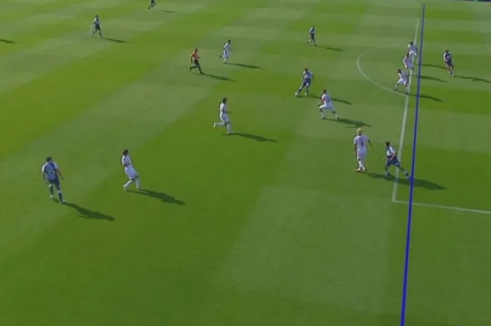 Luego de una repetición que parecía confirmar la posición adelantada, Jorge Baliño llamó desde el VAR y le dijo al juez principal que modifique su decisión ya que el juvenil del Lobo estaba habilitado. Posteriormente, el trazado de líneas dejó más dudas que certezas.