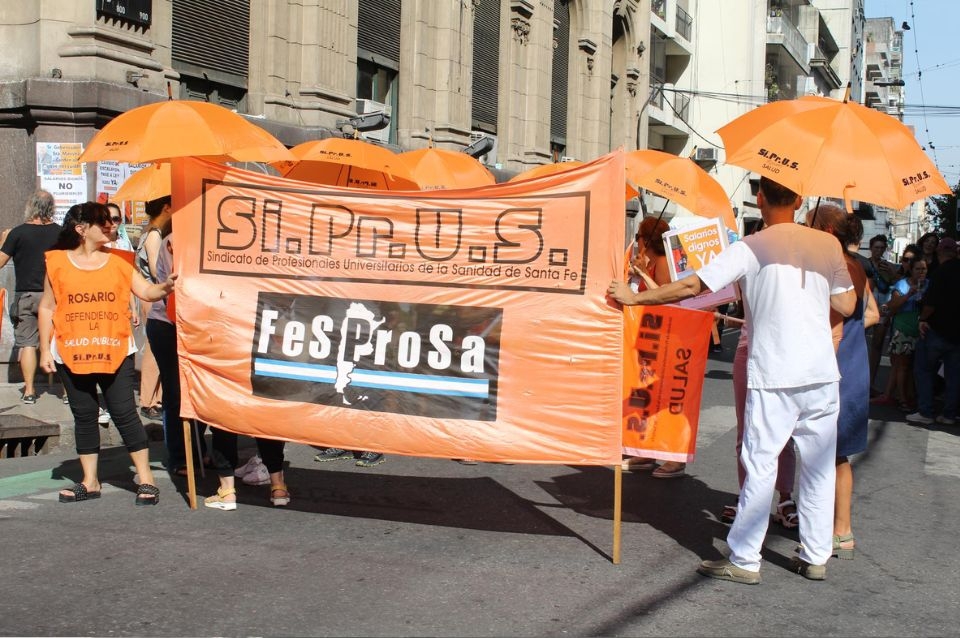 Este jueves 4 de diciembre los profesionales de la salud nucleados en Si.Pr.U.S realizan una jornada provincial de protesta con carpas sanitarias, recolección de firmas y actividades con la comunidad en varios puntos de la provincia para denunciar el rechazo a un aumento salarial insuficiente y un achicamiento del sistema público de salud.