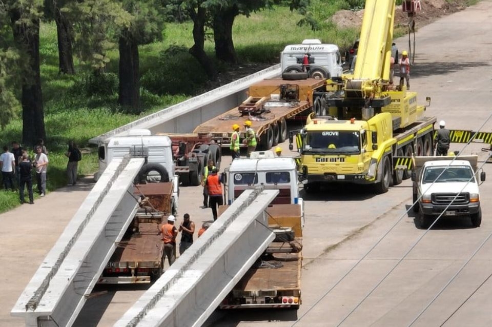 Son las primeras tres vigas longitudinales provenientes de San Luis, parte de un total de 56 que permitirán avanzar hacia la próxima etapa estructural del proyecto. La obra en sí tiene un 35% de avance.