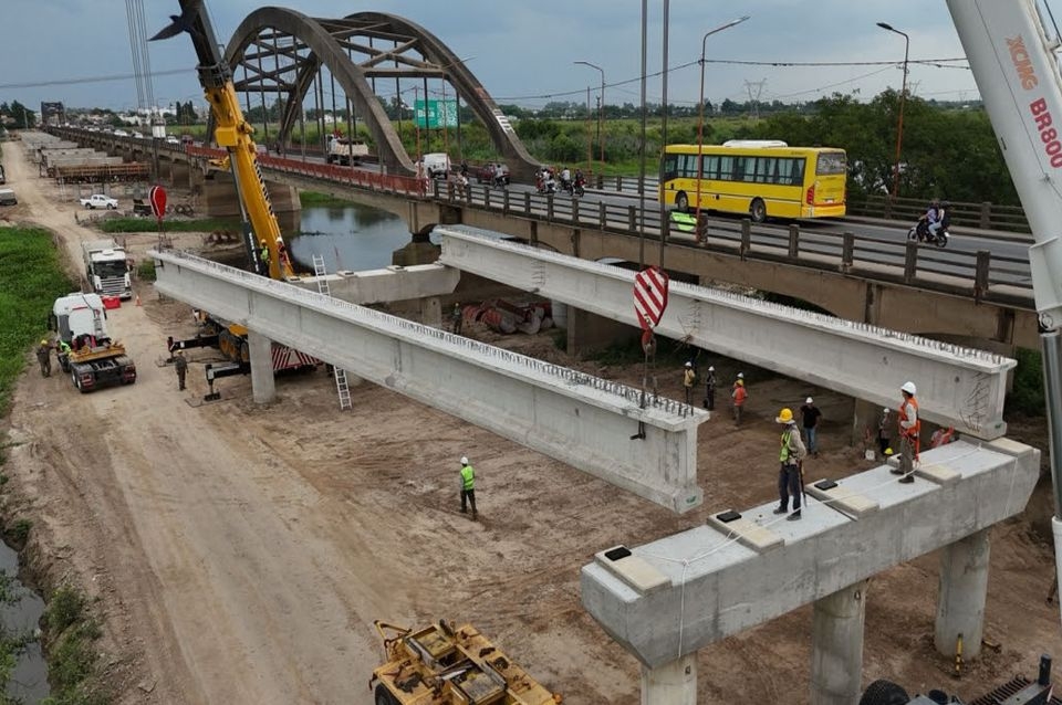 Una nueva etapa de la construcción del nuevo Puente Santa Fe-Santo Tomé comenzó este jueves con la colocación de las vigas longitudinales, de 30 metros, que fueron fabricadas en la provincia de San Luis.