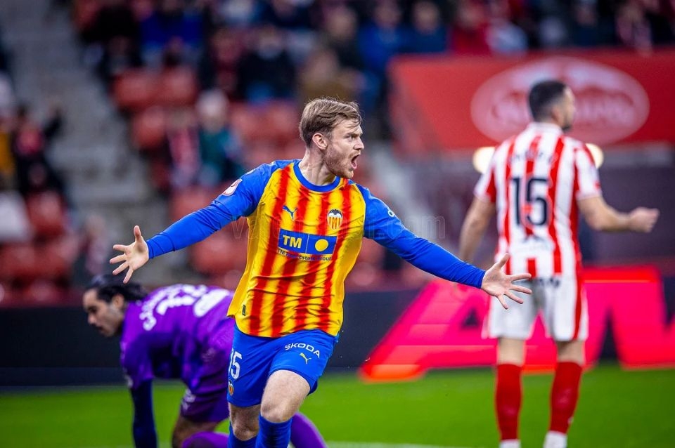 El Valencia le ganó al Sporting Gijón por 2 a 0 al término del partido que disputaron hoy, en el estadio Municipal El Molinón, por la tercera ronda de la Copa del Rey, la copa nacional española.
