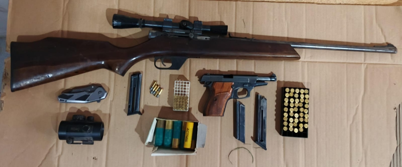 Carabina: sin marca visible, equipada con una mira telescópica marca Arce. El arma contaba con un cartucho en la recámara y un cargador con cinco municiones intactas.
