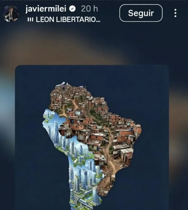 No se trató, esta vez, de alguna disputa cara a cara entre ambos presidentes, separados por un océano ideológico y con un vínculo desde el inicio marcado por la frialdad, con picos de insultos y respuestas airadas. Un posteo en la red social Instagram con el mapa del continente americano, que describe a Brasil y otros países como Venezuela y Colombia como una inmensa favela (villa miseria), fue difundido por el presidente Milei y generó una durísima reacción de uno de los hombres más cercanos a Lula da Silva, el secretario general Guilherme Boulos.