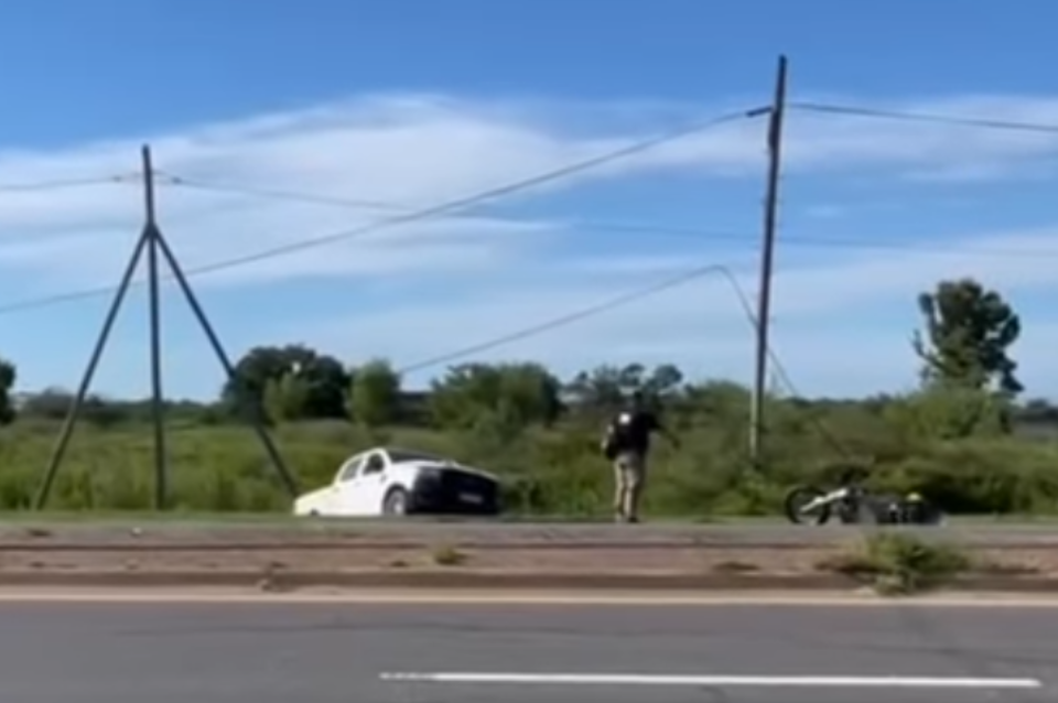 De acuerdo con los primeros datos, la camioneta involucrada —una Ford Ranger blanca conducida por una mujer— terminó fuera de la calzada sobre una zanja, tras impactar contra el motociclista en la bajada del puente que cruza la autopista Santa Fe–Rosario.