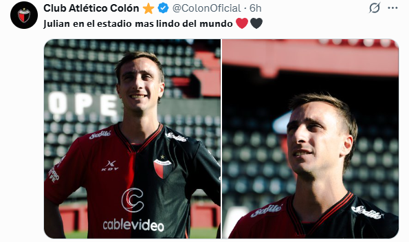 El delantero ya firmó su contrato hasta el 31 de diciembre de 2026, llega en condición de libre y el acuerdo incluye una opción de compra por el 50% de su pase. En otra publicación, Colón sumó una imagen del futbolista en el Brigadier López con la frase: “Julián en el estadio más lindo del mundo”, reforzando el impacto de la presentación.