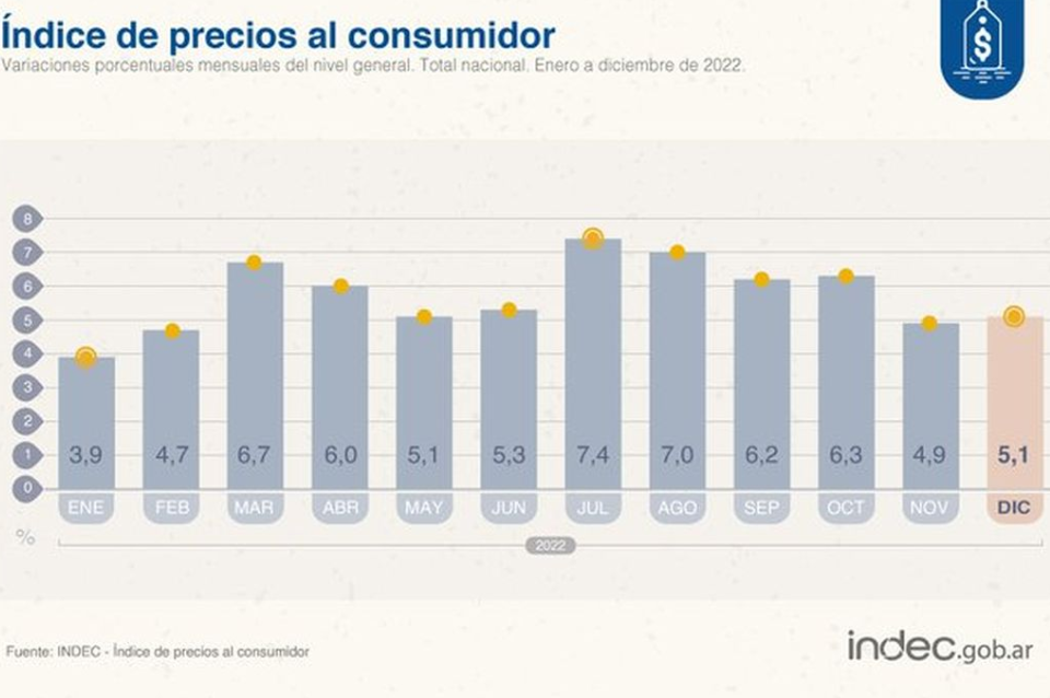 La inflación de diciembre fue de 2,8%, según el Índice de Precios al Consumidor que difundió el Instituto Nacional de Estadísticas y Censos (INDEC).