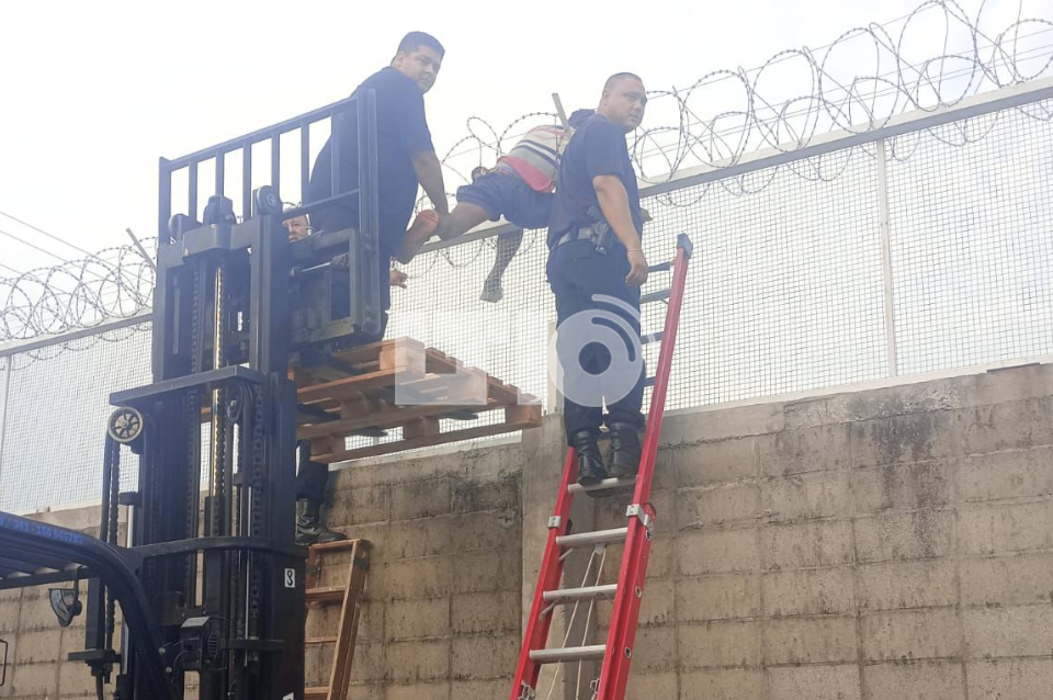 En la huida, el hombre quedó atrapado en la concertina —el sistema de alambre de seguridad—, sin posibilidad de bajar por sus propios medios. La situación se agravó cuando, visiblemente alterado y con heridas sangrantes, amenazó con quitarse la vida.