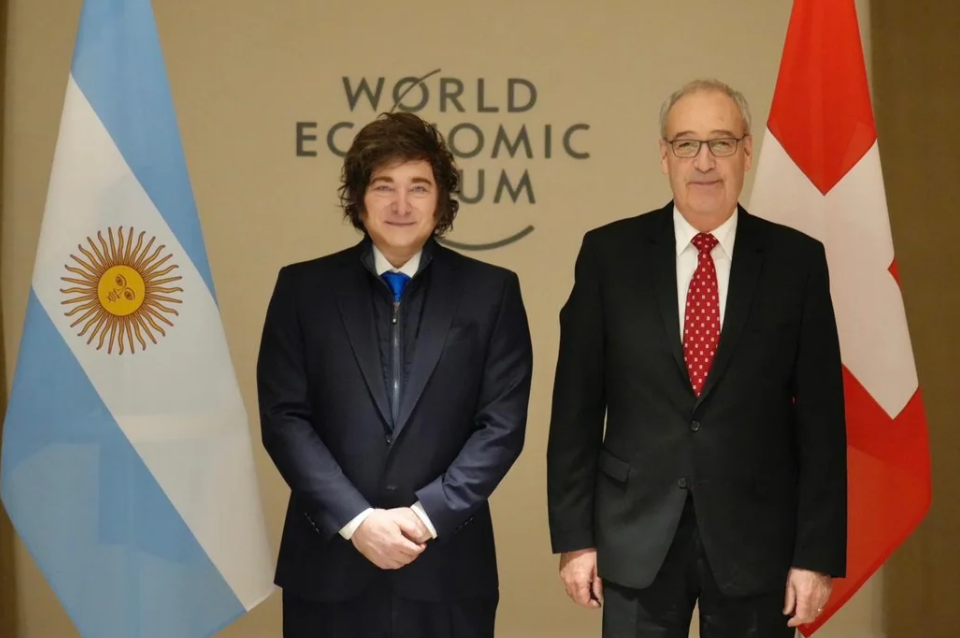 El presidente Javier Milei cumple agenda desde Davos, donde se reunió con ceo‘s de bancos y saludó a su par de Suiza, Guy Parmelin, en la previa a su exposición en el Foro Económico.