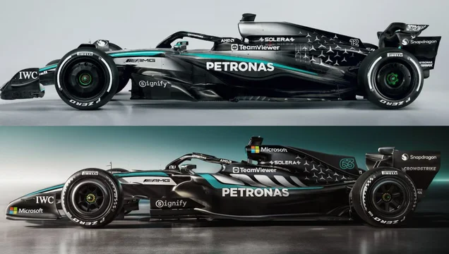 El W17 con el que el británico George Russell y el italiano Kimi Antonelli buscarán pelear por el título se caracteriza por un predominio de los colores plateado y negro, mientras que tiene detalles con líneas en verde agua.