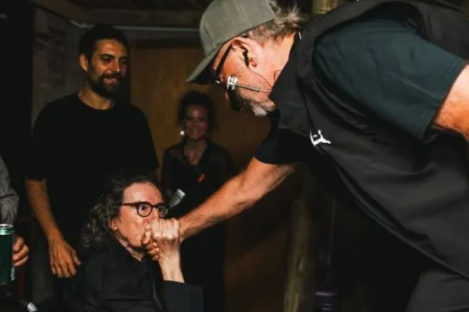 El impacto fue inmediato. Al advertir la presencia de su amigo, León Gieco interrumpió el clima del show para compartir la emoción con los presentes y lanzó desde el escenario un espontáneo “mirá quién vino”, lo que desató una ovación generalizada. García, de 72 años, llegó en silla de ruedas, vestido de negro y con sus clásicos accesorios. No participó musicalmente del recital, pero siguió cada momento desde un costado del escenario.