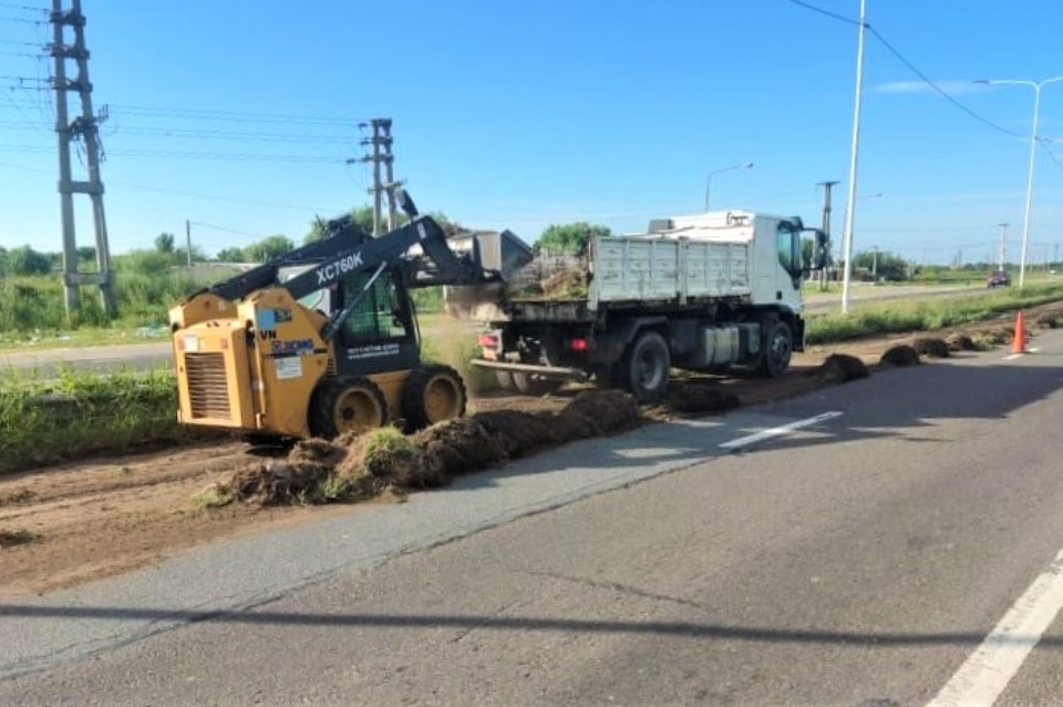 Según se informó, los trabajos apuntan a mejorar el drenaje del agua durante lluvias intensas para evitar acumulaciones sobre la calzada. En paralelo, otro grupo de operarios lleva adelante tareas de desmalezado y despeje de barandas y señalización vial en el mismo tramo de la Circunvalación Oeste.