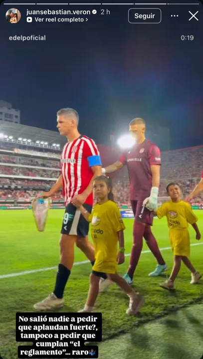 El presidente de Estudiantes de La Plata, Juan Sebastián Verón, publicó una picante historia en sus redes sociales luego del pasillo que le hizo Boca a los jugadores del “Pincha” por su título en el Torneo Clausura: “¿Nadie salió a pedir que aplaudan fuerte?”.